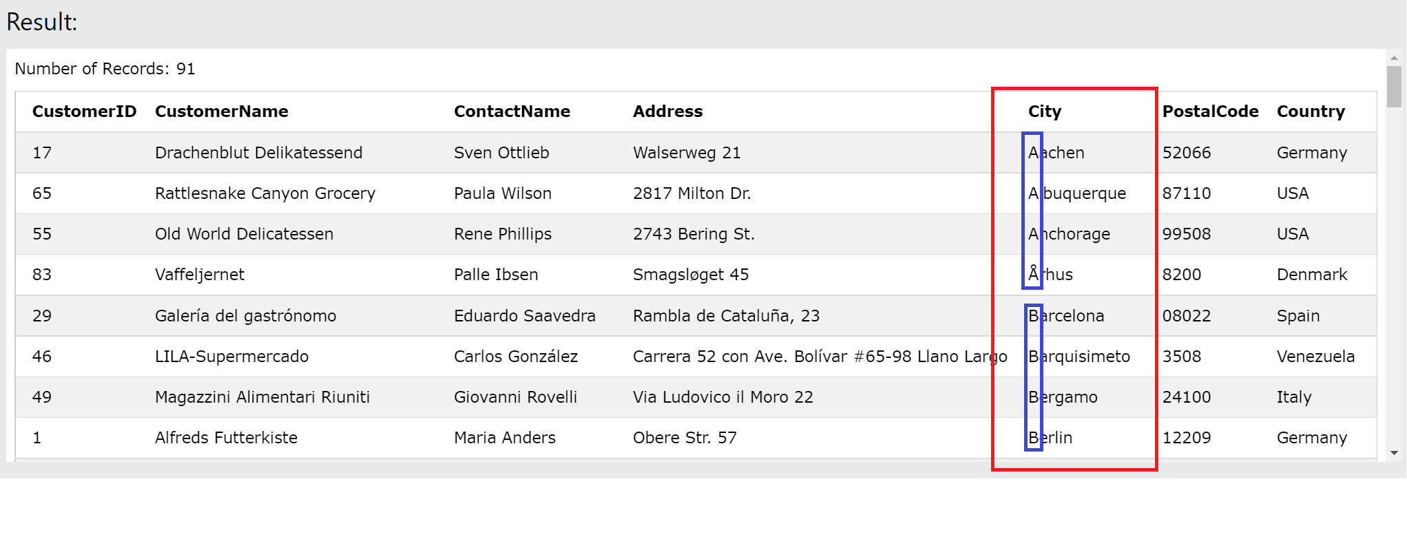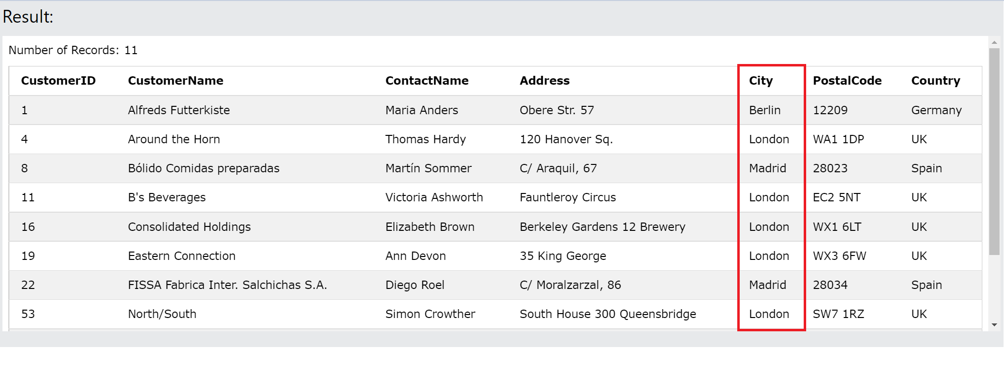 ORDER BY City;