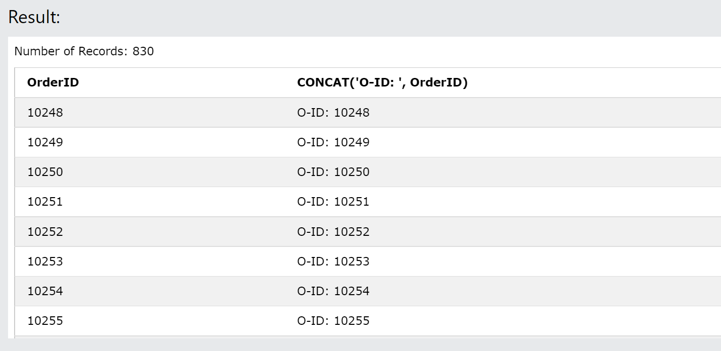 SELECT OrderID, CONCAT('O-ID: ', OrderID) FROM Orders;