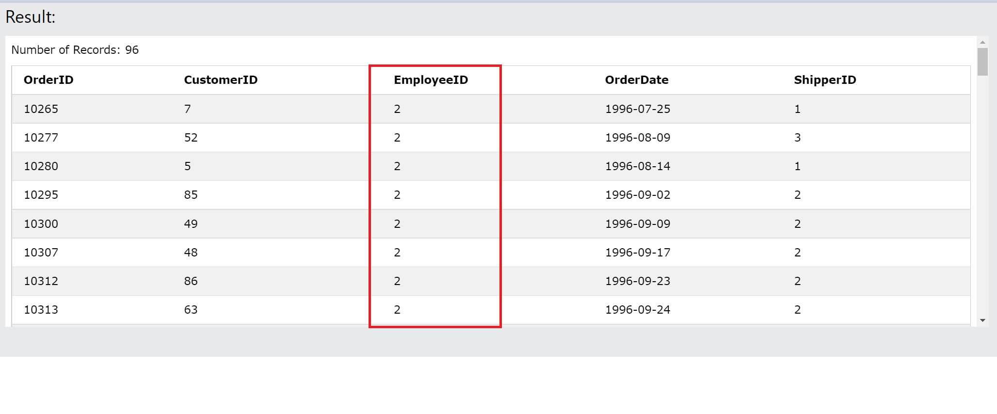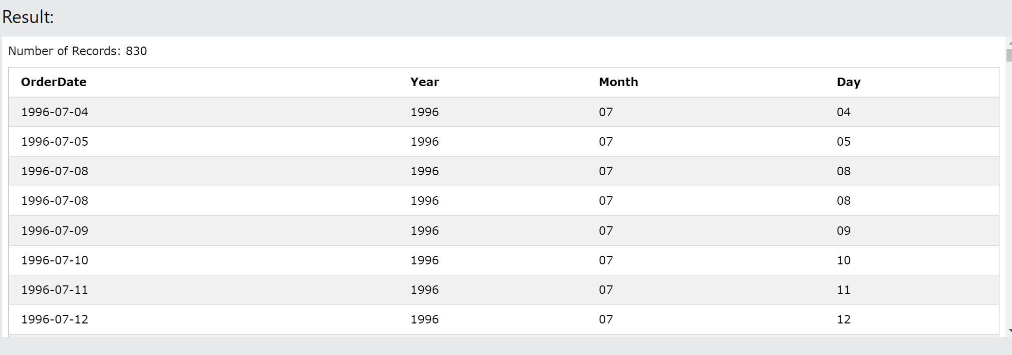 SUBSTR(OrderDate, 6, 2) AS Month,