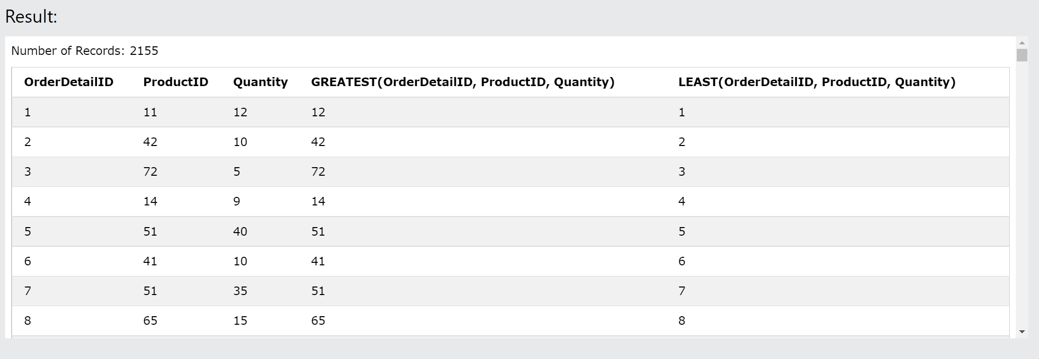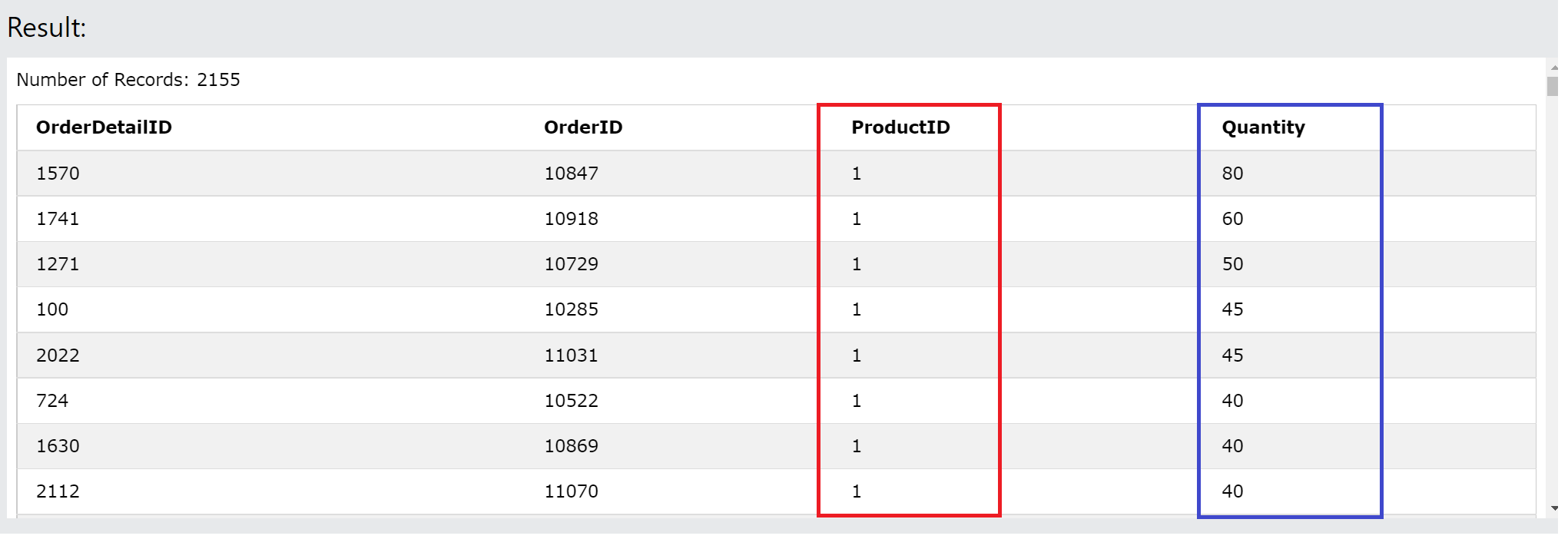 ORDER BY ProductID ASC, Quantity DESC;