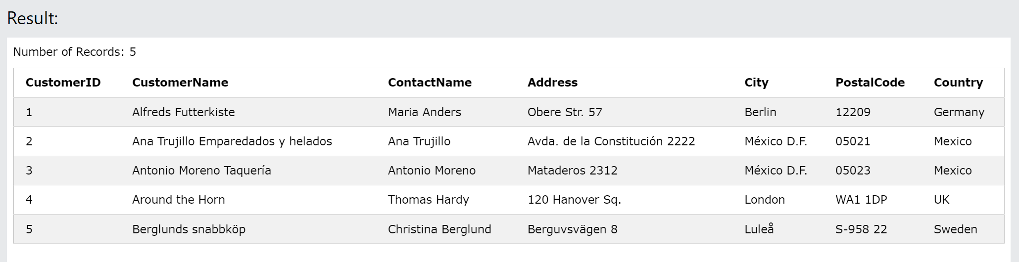 SELECT * FROM Customers;