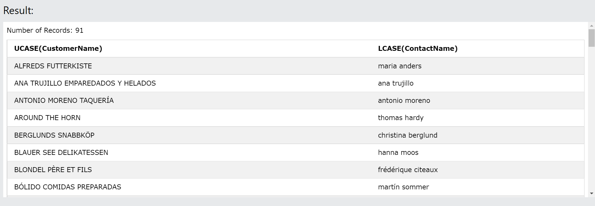 LCASE(ContactName)