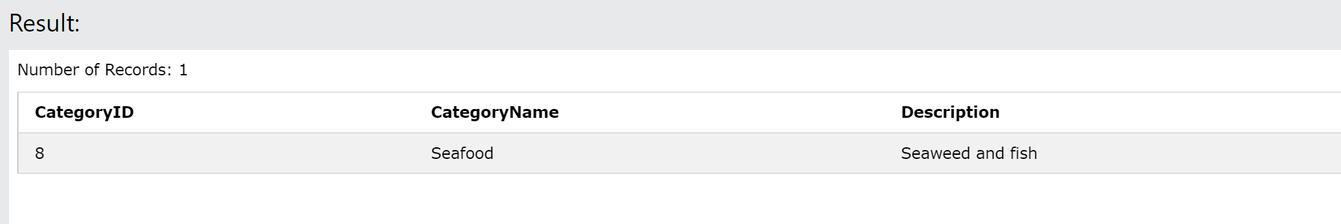 WHERE CategoryName = TRIM(' Seafood ')