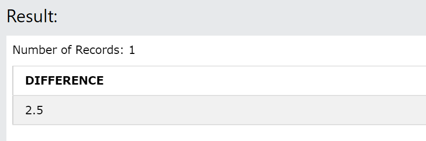 SELECT 5 - 2.5 AS DIFFERENCE;