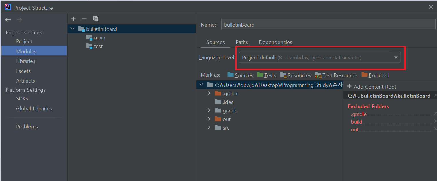 프로젝트 인식 불가, 빌드 오류 관련 Inteli J 설정