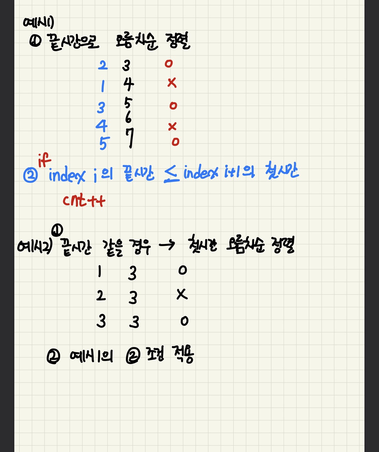 💡 나는 : 인덱스i의 끝시간 ≤ 인덱스i+1의 첫시간이라면, cnt++