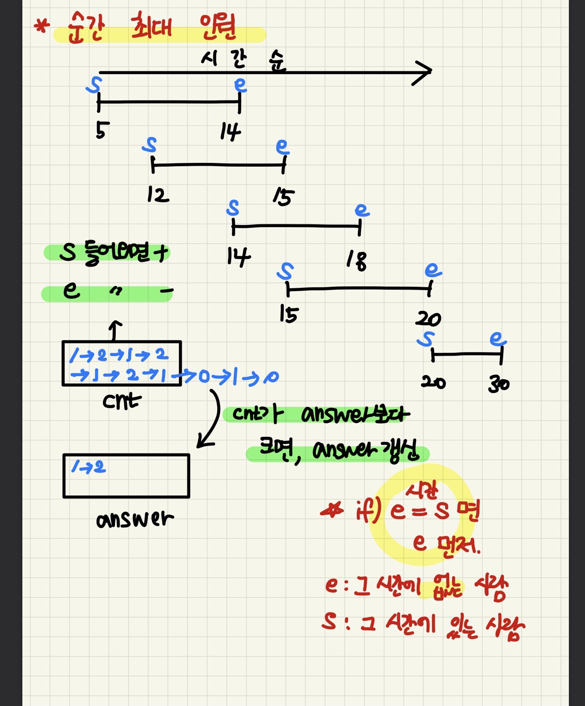 int cnt=0; // 현재 이 순간 동시 최대 인원