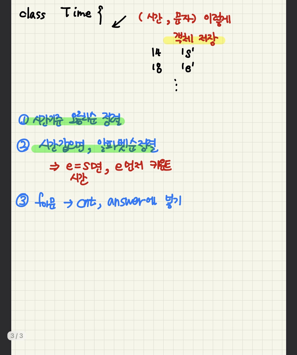 // 시간 같으면, 알파벳순 정렬(s보다 e먼저 처리해야함!!) this - t