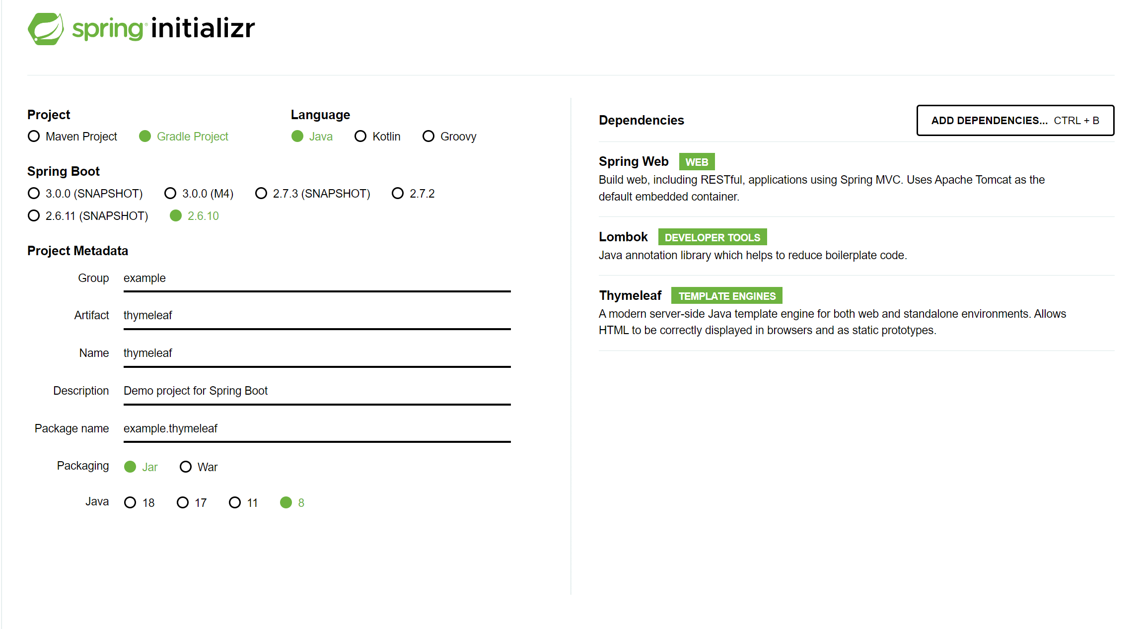 공식 메뉴얼 - 스프링 통합: https://www.thymeleaf.org/doc/tutorials/3.0/thymeleafspring.html