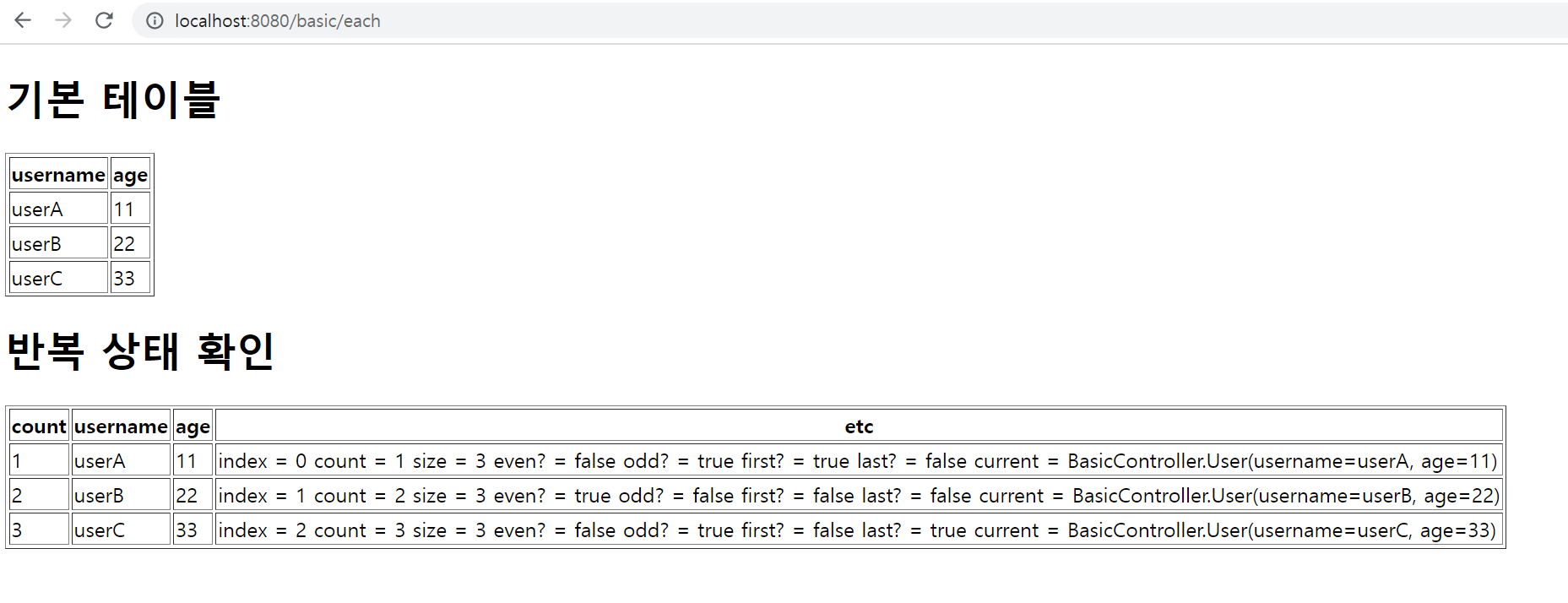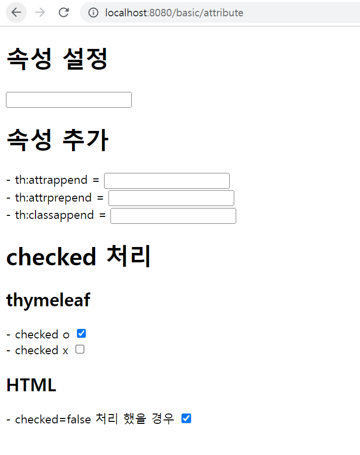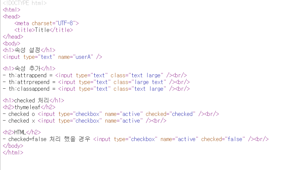 반면에 타임리프로 작성된 파일은 해당 파일을 그대로 웹 브라우저에서 열어도 정상적인 HTML 결과를 확인할 수 있습니다. 물론 이 경우 동적으로 결과가 렌더링 되지는 않습니다.