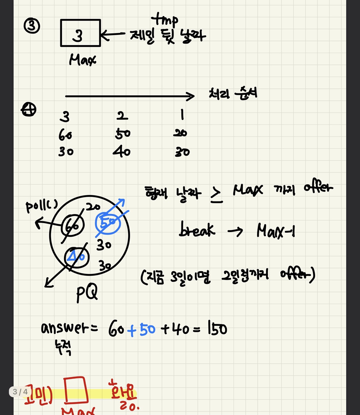 // day 내림차순 l - this : day를 내림차순으로 정렬 후 해당 money를 pQ에 넣기 위함