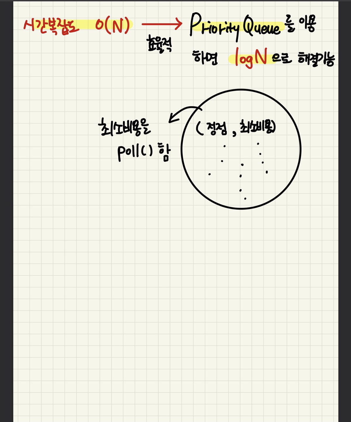 다익스트라 알고리즘의 경우 시간복잡도가 O(N)이므로 좀 더 효율적인 코드 구현을 위해 이 문제에서는