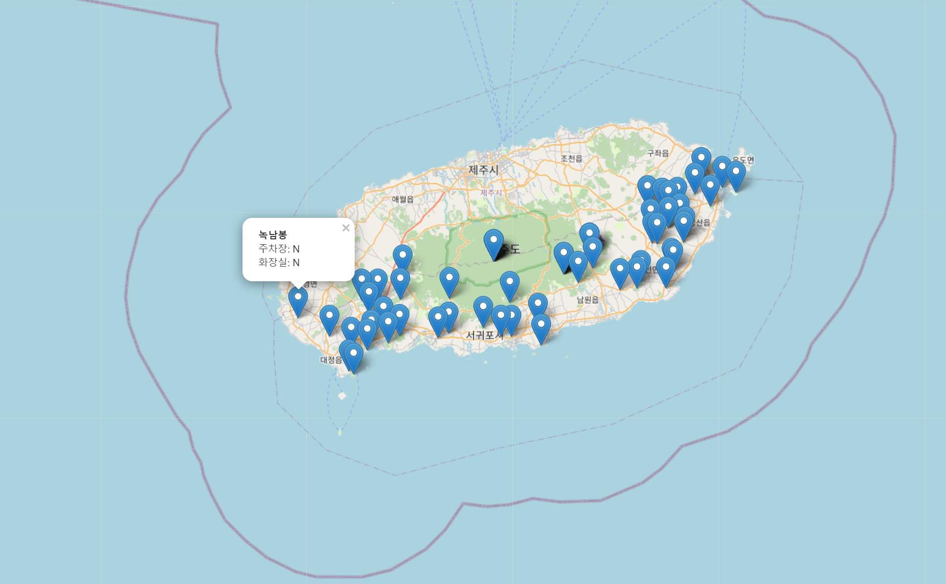 여기까지 제주 오름 지도 서비스를 간단하게 만들어보았습니다.