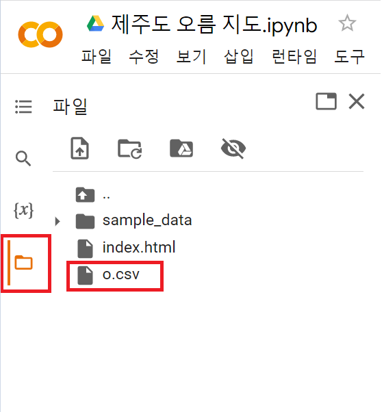 제주 오름을 검색하고, 위도 경도 데이터가 포함된 CSV 파일을 다운합니다.