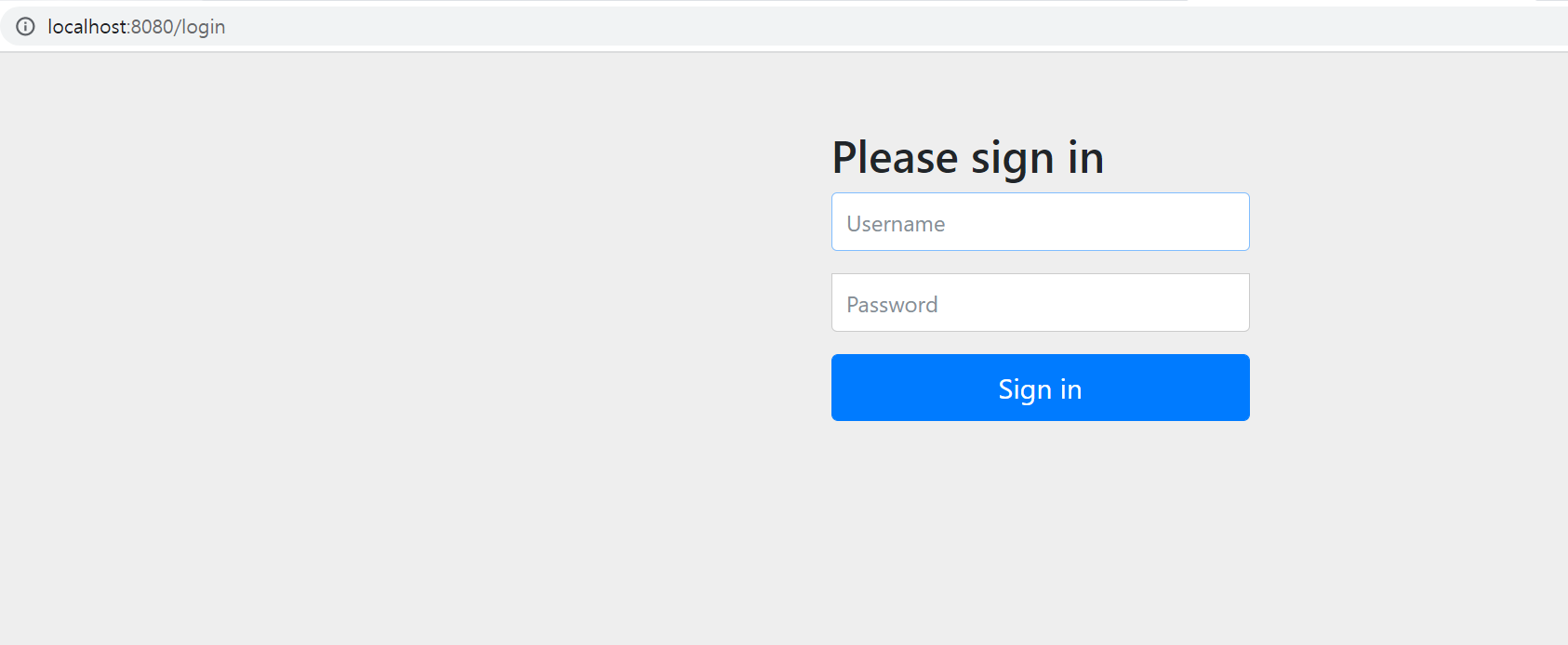 여기까지 작성하고 구동하면 아래와 같은 로그인 페이지가 뜨는 것을 볼 수 있습니다.