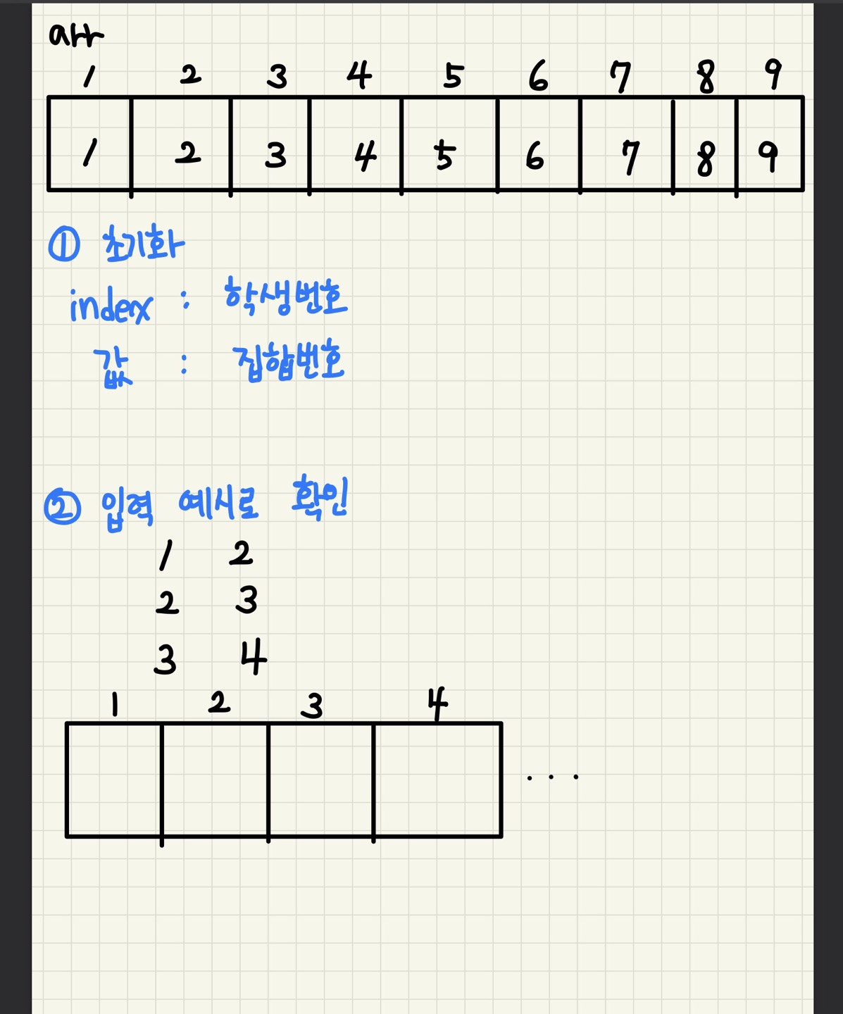 // 초기화 배열 생성 : 학생번호와 집합번호 일치