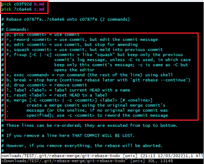 이제 밑의 옵션을 보고 과거 커밋의 명령어를 수정할 수 있습니다.