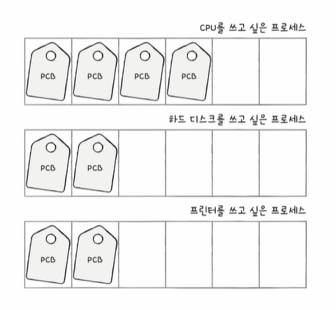 그런데 운영체제가 매번 프로세스들의 PCB를 확인해서 자원 이용 순서를 적용하는 건 비효율적입니다.