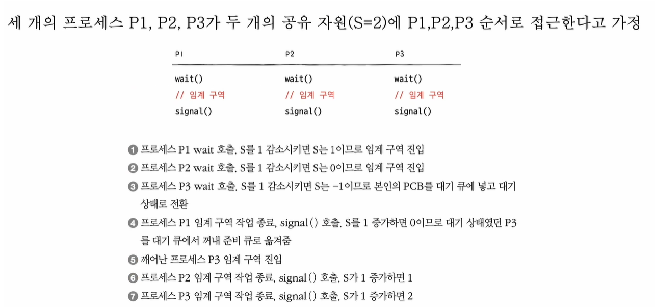 좀 더 일반화된 방식의 동기화 도구로 공유 자원이 여러 개 있는 경우에도 적용이 가능합니다.