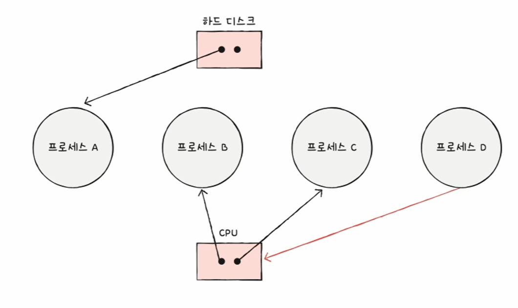 - 모든 자원을 프로세스들이 공유..... 하게 만들 순 없습니다. 현실적으로 불가능합니다.