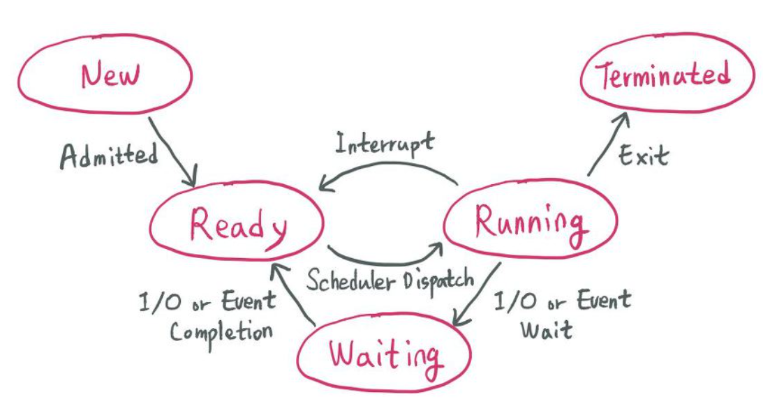 ✓ 입출력 또는 이벤트 대기 (I/O or Event wait) : 실행 중인 프로세스가 입출력이나 이벤트를 처리해야 하는 경우, 입출력/이벤트가 모두 끝날 때까지 대기 상태로 만드는 것.