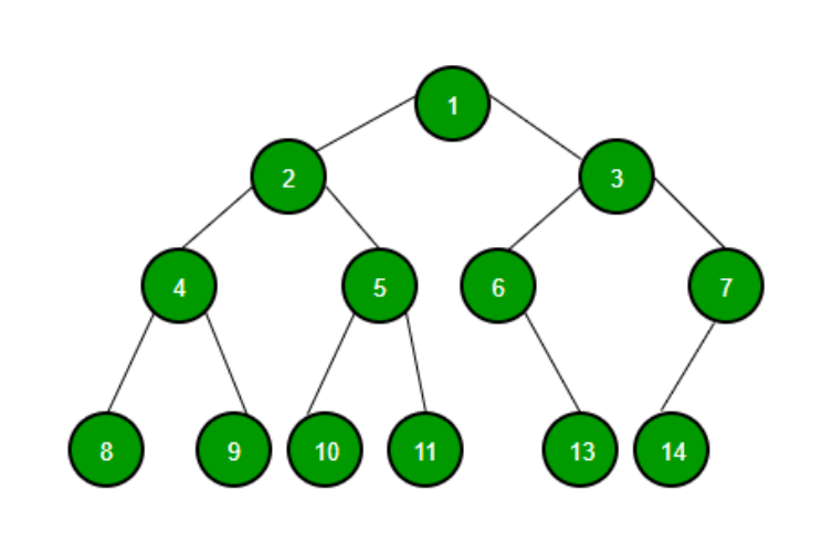 1 → 2 → 4 → 8 → 9 → 5 → 10 → 11 → 3 → 6 → 13 → 7 → 14