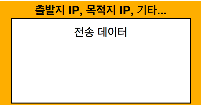 IP패킷은 출발지와 목적지 IP가 전송 데이터를 감싸는 구조로 되어 있습니다.