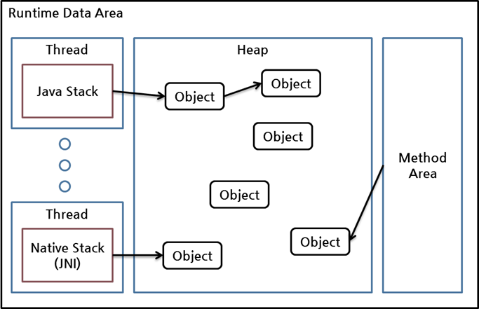 JVM에서 메모리 영역인 런타임 데이터 영역(runtime data area)의 구조