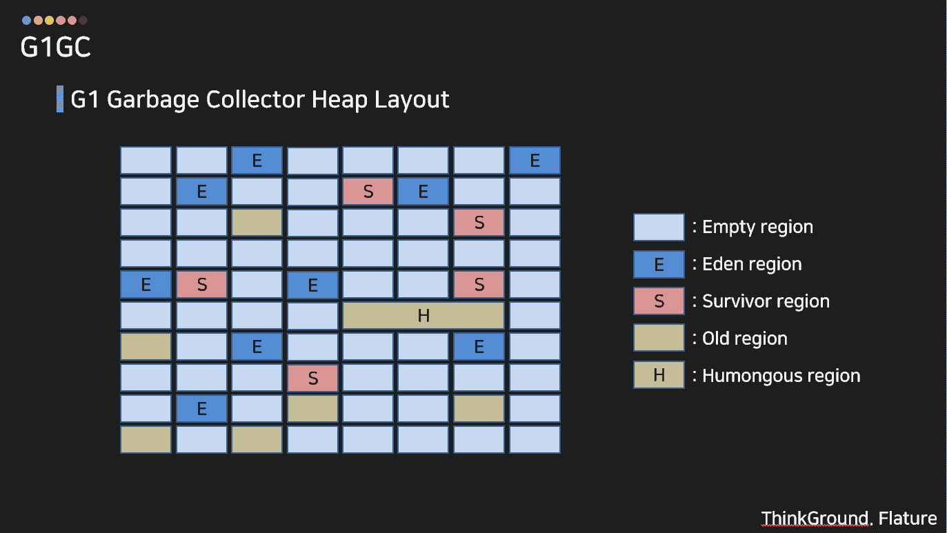 G1GC는 전체 heap을 체스판처럼 여러 영역(region)으로 나누어 관리합니다.