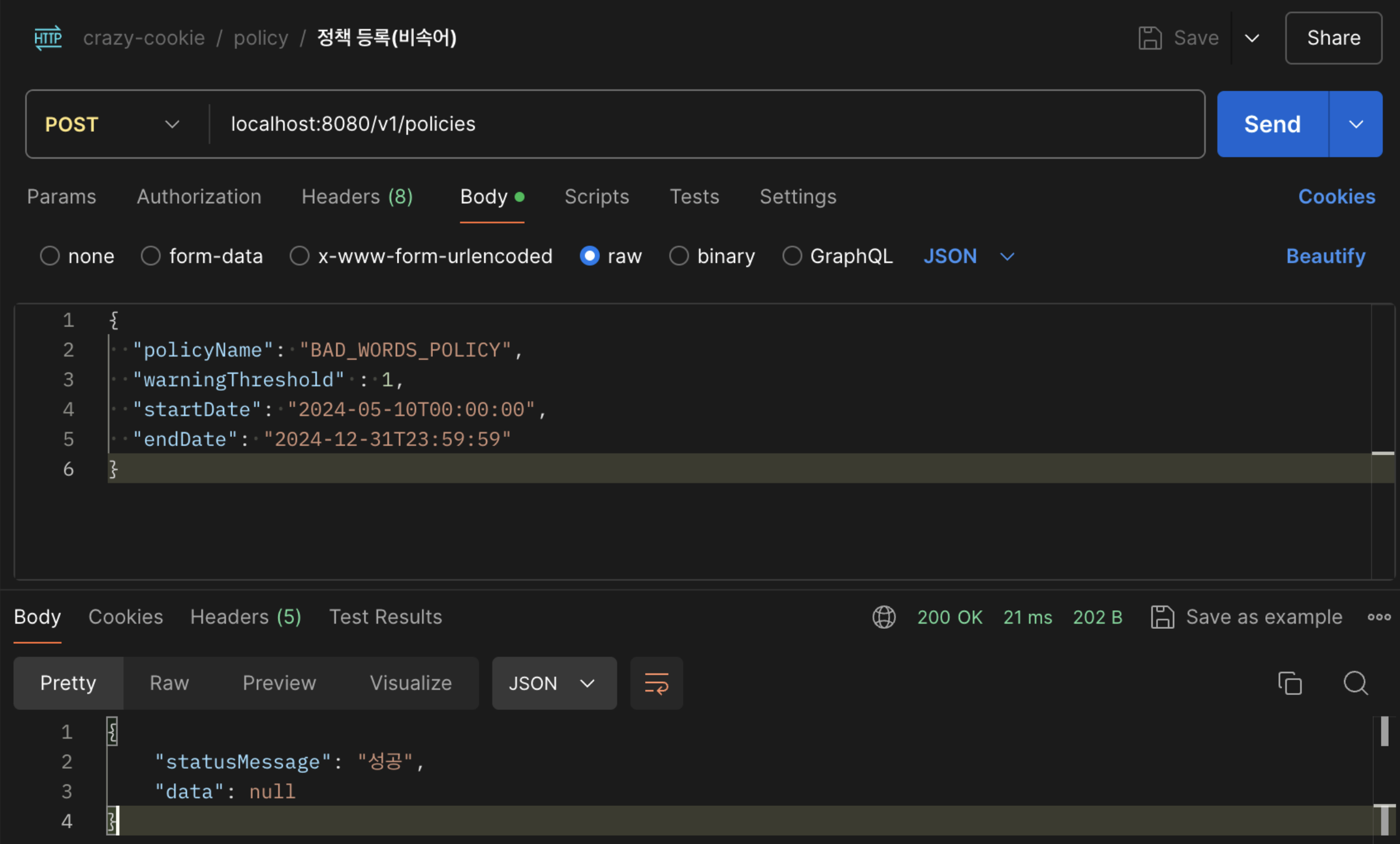 정책 등록 api 구현