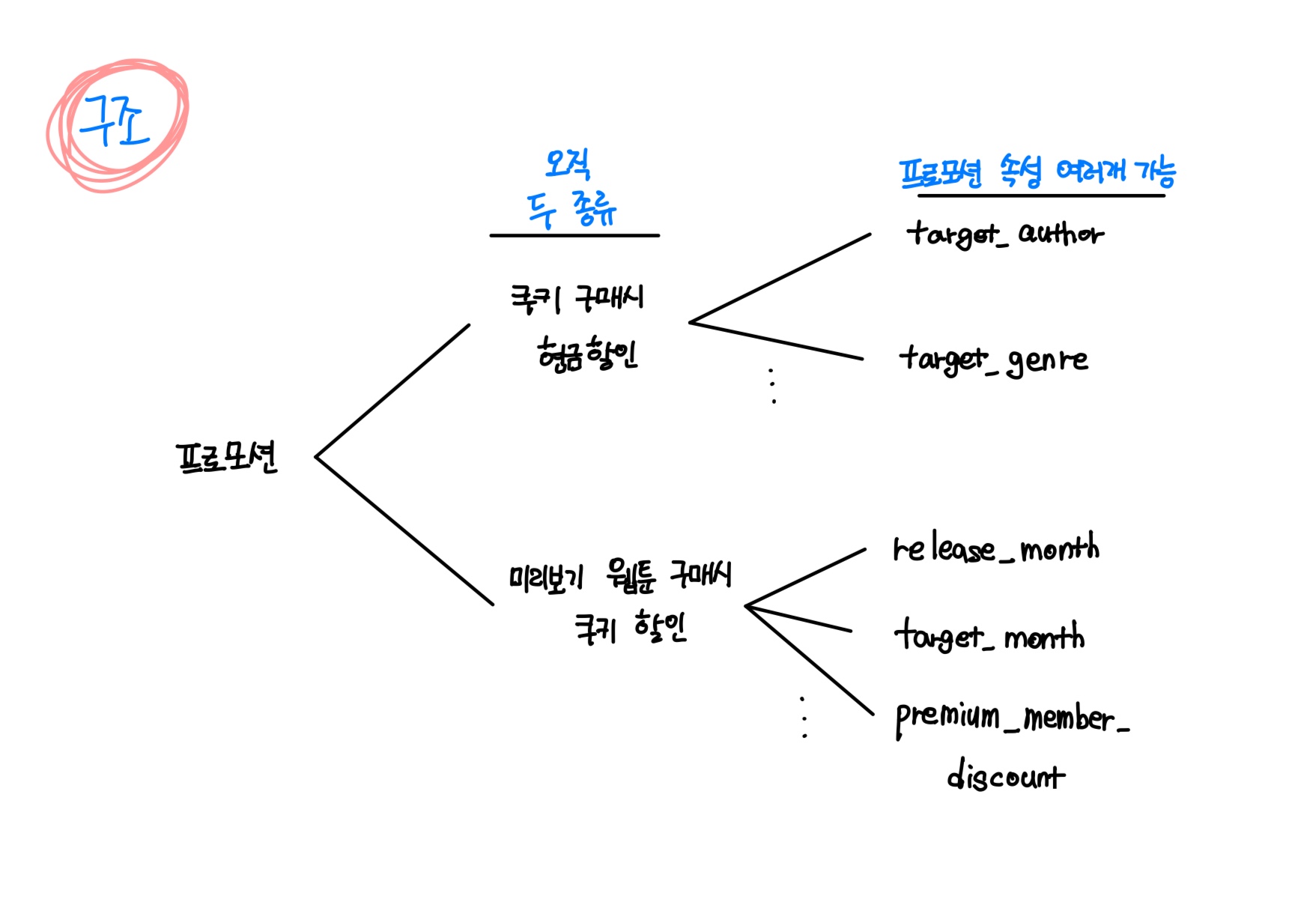 개선하기 전에 기획 단계에서 프로모션, 프로모션 속성 테이블 설계 부분을 살펴보도록 하자