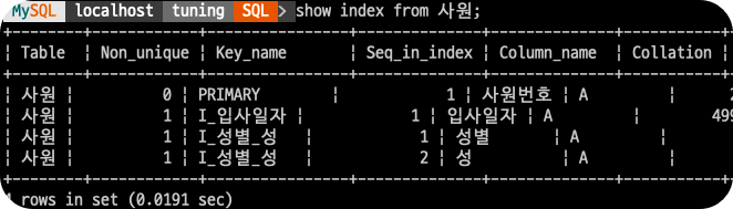 그럼 WHERE절에서 I_성별_성 인덱스를 활용해 데이터를 빠르게 조회할 수 있었을 것이다.
