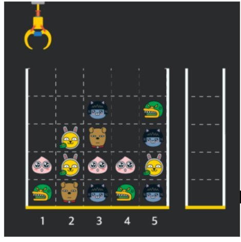 또한 바구니는 모든 인형이 들어갈 수 있을 만큼 충분히 크다고 가정합니다. (그림에서는 화면표시 제약으로 5칸만으로 표현하였음)